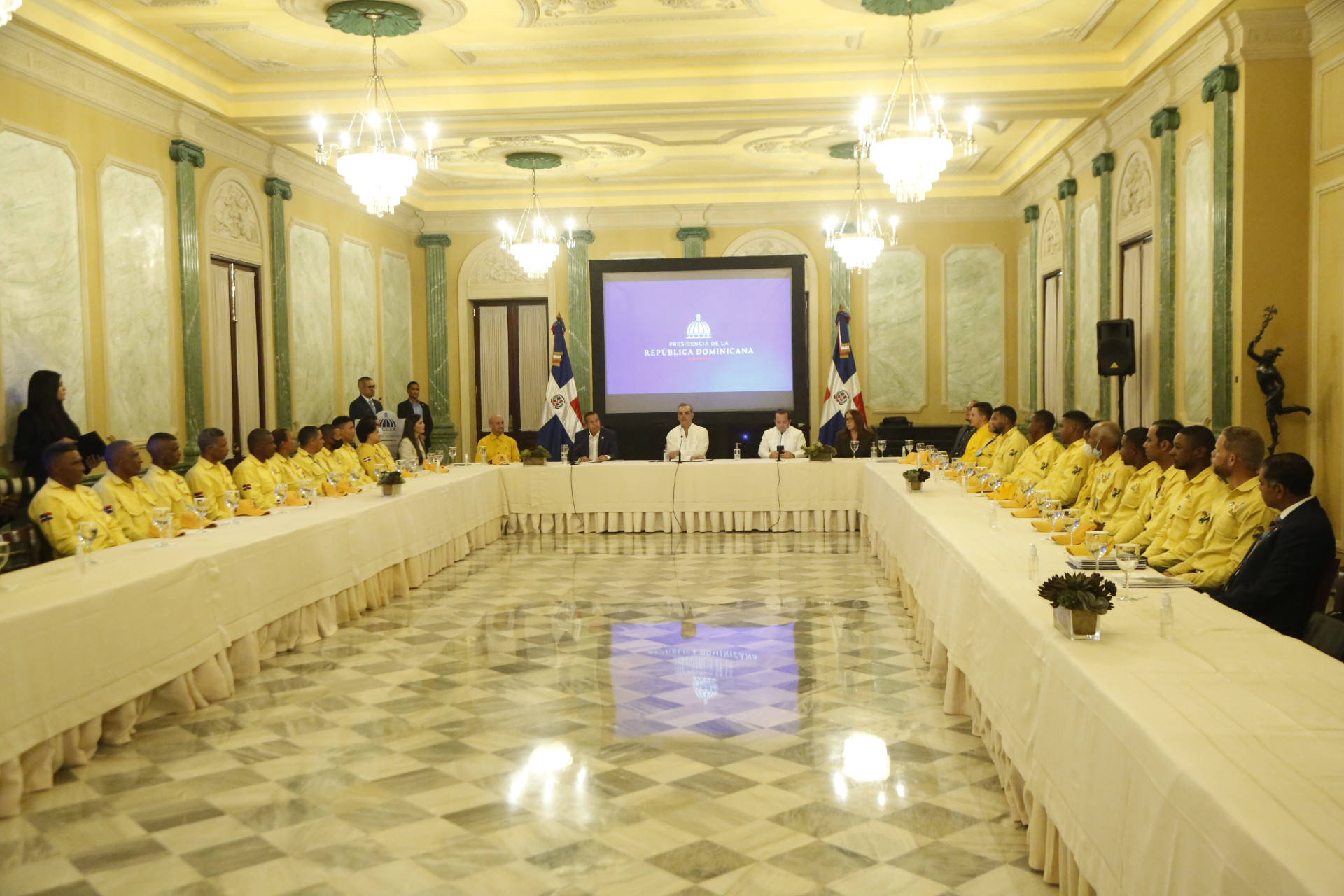 Presidente Luis Abinader recibe junto al Ministro de medio ambiente a Bomberos Forestales