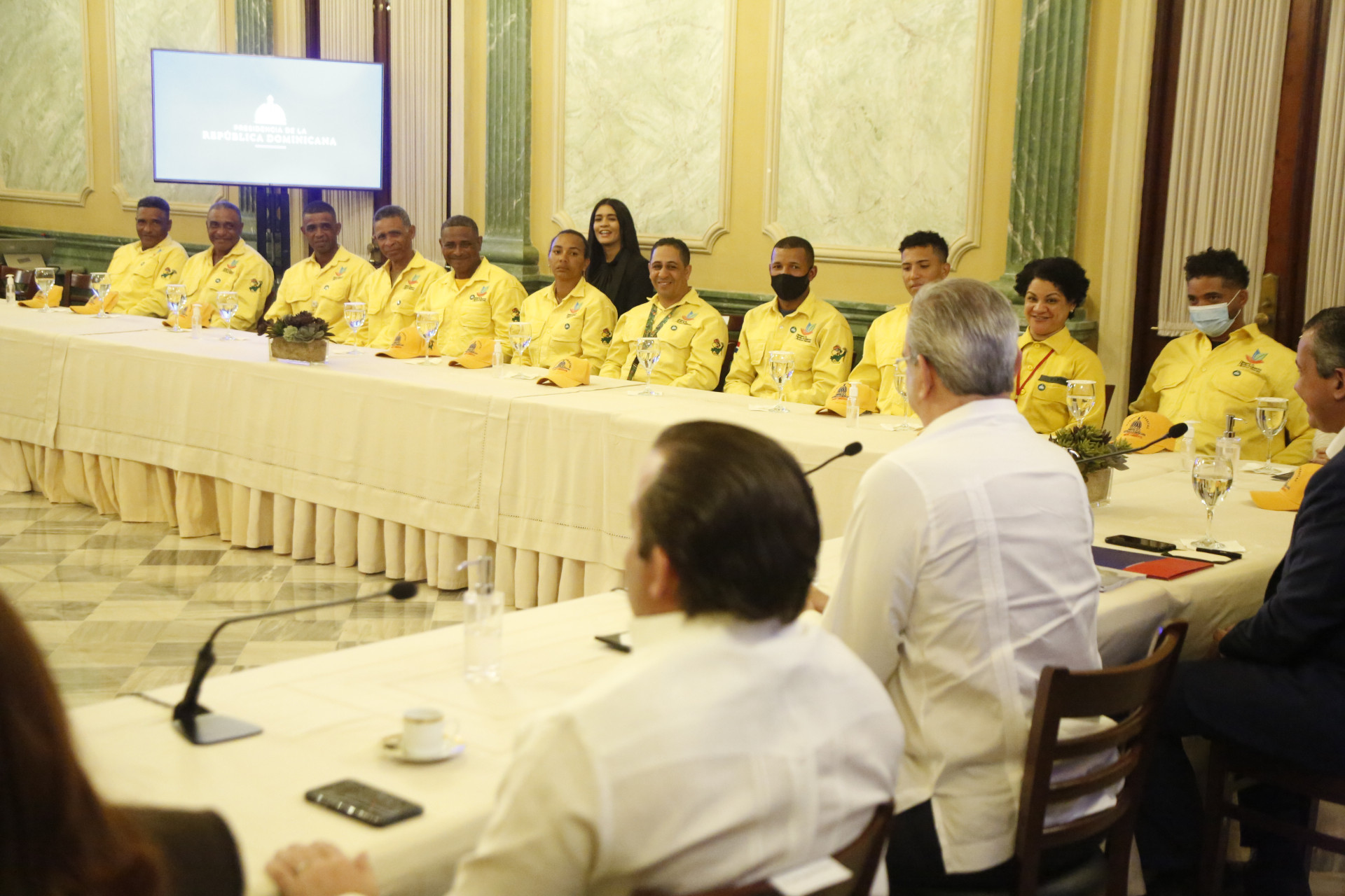 Presidente Luis Abinader recibe junto al Ministro de medio ambiente a Bomberos Forestales