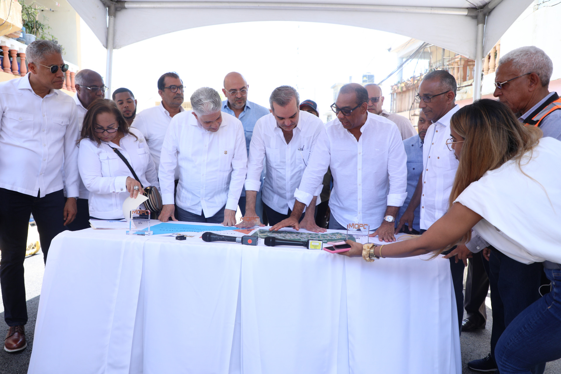 Acompañaron al mandatario, el presidente del Senado, Eduardo Estrella; la gobernadora Rosa Santos; el ministro de Salud Pública, Daniel Rivera; los directores, de la DGII, Luis Valdez; del Consejo de Gestión Presidencial, Dio Astacio; de los Centros Tecnológicos Comunitarios (CTC), Isidro Torres; del ITLA, Omar Méndez; del Instituto Politécnico la Esperanza, Juan Hernández, y la directora regional de Educación, Marieta Díaz, entre otros.