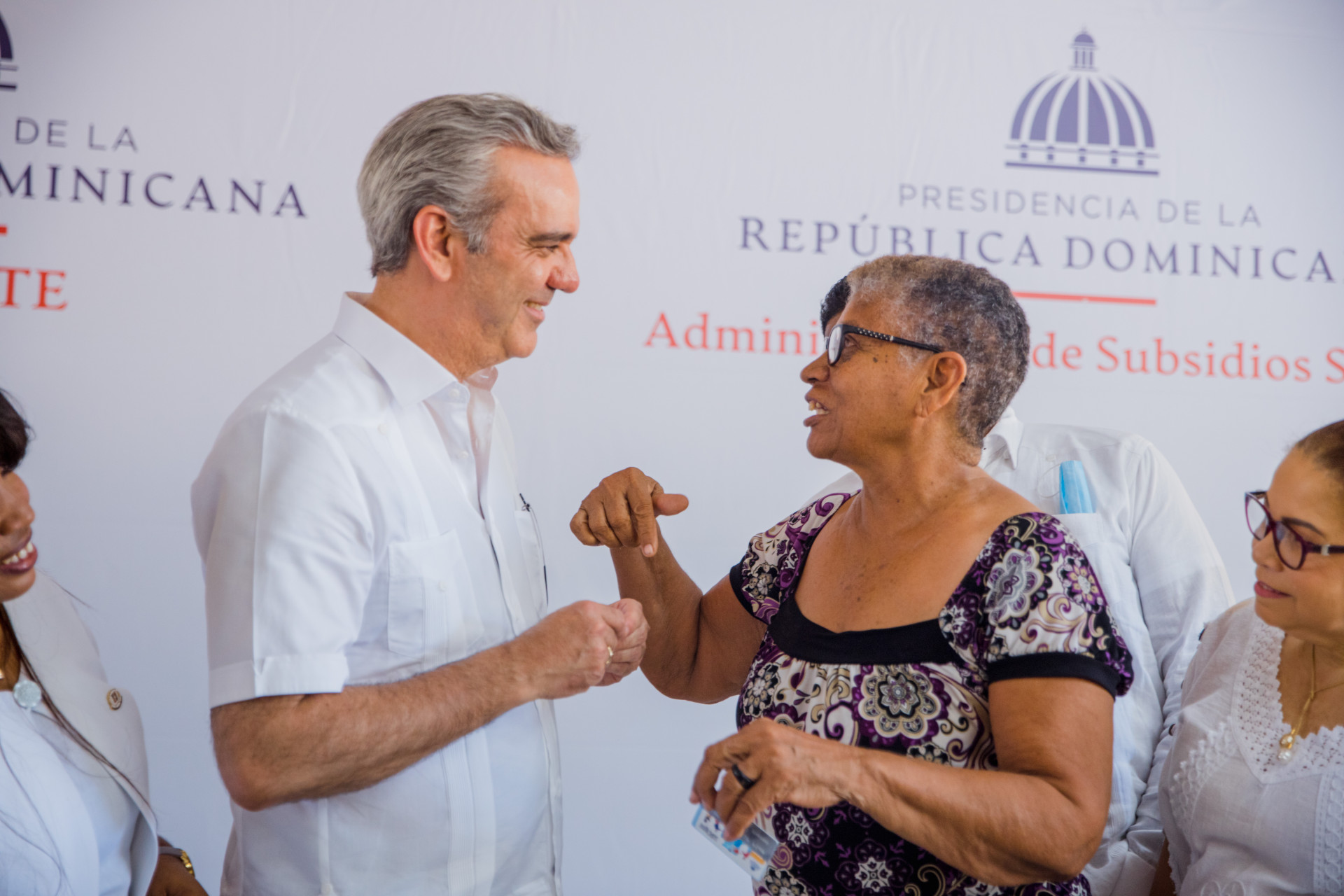 Acompañaron al Presidente, la Ministra de Estado sin Cartera de la Presidencia, Geanilda Vásquez; el viceministro Administrativo de la Presidencia, Igor Rodríguez; el viceministro de Incentivo a la Producción y Emprendimiento, José Gabriel Jáquez; la directora de la Administradora de Subsidios Sociales (ADESS), Digna Reynoso; la gobernadora de la provincia Independencia, Mercedes Novas; los diputados de Independencia y Bahoruco, Llanelis Matos y Alfaris Méndez, entre otros.