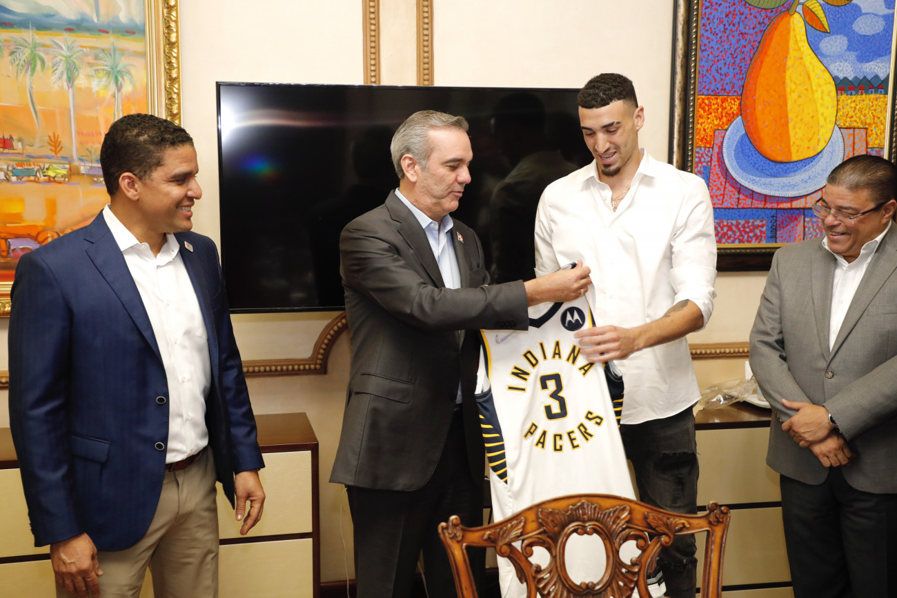 Presidente Luis Abinader recibe la visita del jugador de la nba dominicano, Chris Duarte.