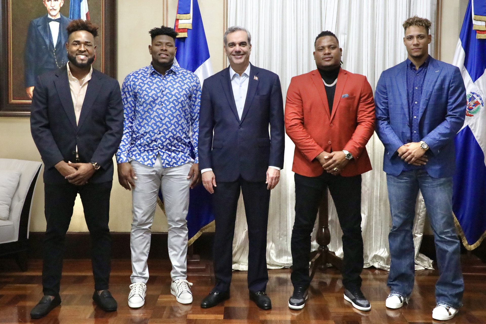 Como parte de la delegación de jugadores de los Astros de Houston que visitaron al presidente Abinader en su despacho, estuvieron los lanzadores Bryan Abreu, Héctor Neris, Framber Valdez y Cristian Javier.