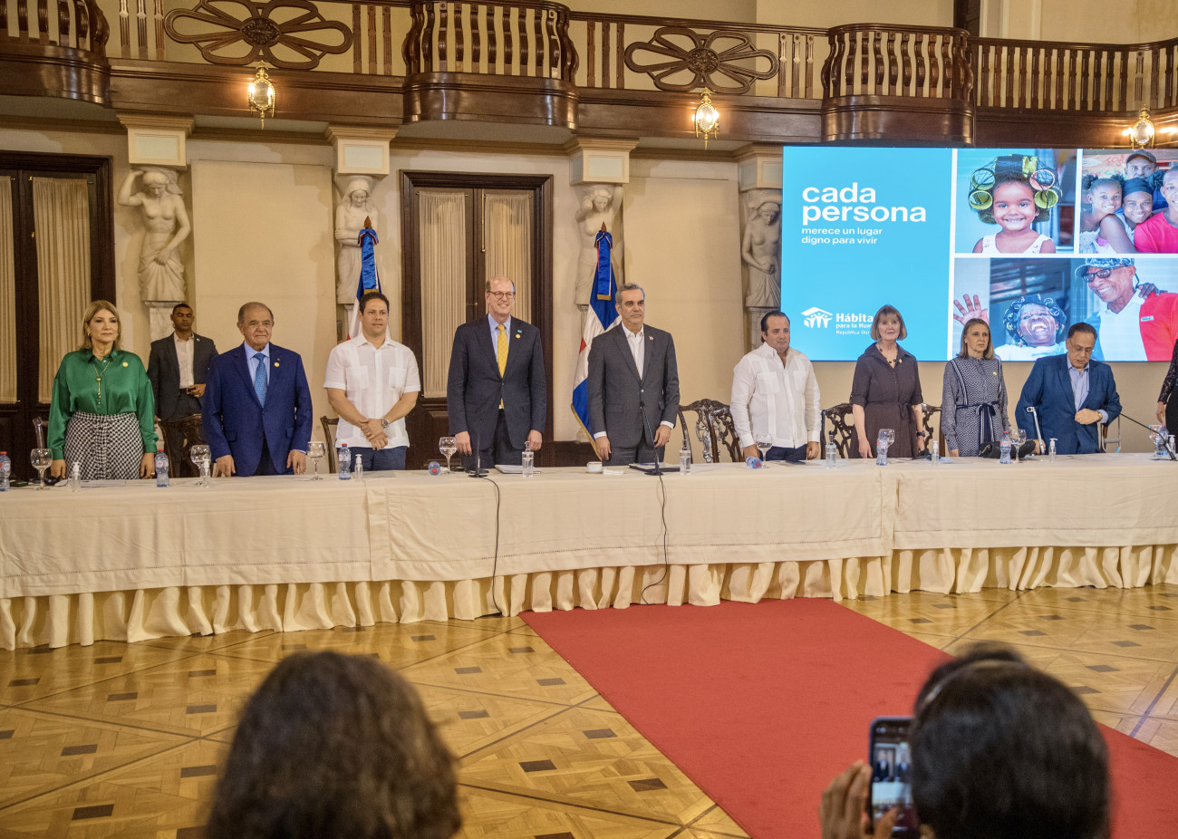 Durante la actividad realizada en el Salón Las Cariátides del Palacio Nacional con el presidente ejecutivo (CEO) de Hábitat para la Humanidad Internacional, Jonathan Reckford; la directora nacional de Hábitat República Dominicana, Cesarina Fabián, y el miembro de la Junta Directiva de Hábitat para la Humanidad Internacional, Celso Marranzini, el Presidente Abinader agregó que este plan es una iniciativa internacional que en América Latina tiene como objetivo intervenir hasta 100,000 hogares.