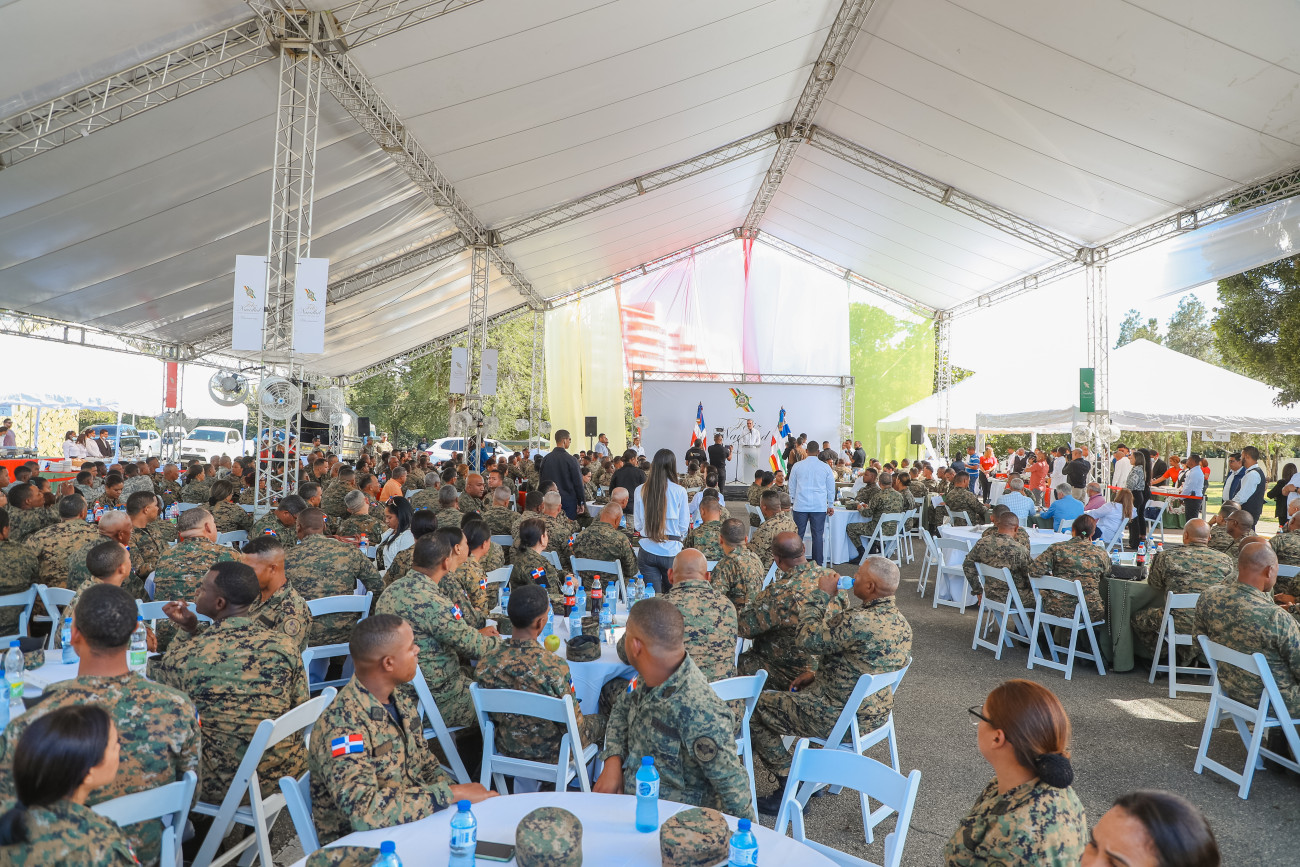 Santiago.- El presidente Luis Aninader junto a la vicepresidenta Raquel Peña almozaron este sábado con miembros del Ejército Nacional en esta provincia, y allí el mandatario les expresó su agradecimiento y orgullo por siempre responder a favor de la paz, seguridad y democracia del país.