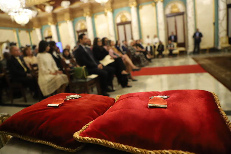 Presidente Abinader condecora a Negro Santos y Charytín Goico con la Orden Heráldica de Cristóbal Colón en el Grado de Caballero
