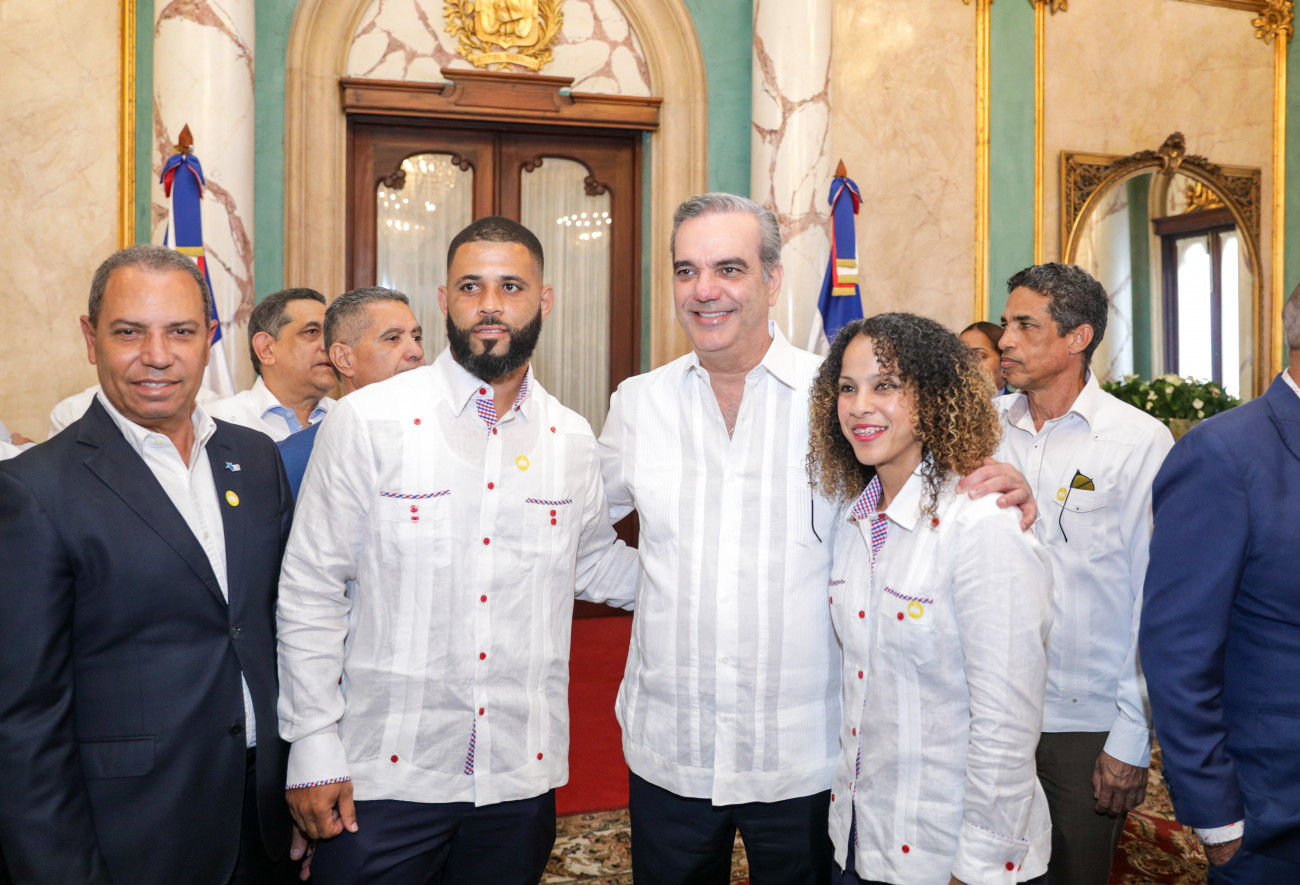 Presidente Abinader entrega bandera nacional a delegación que participará en los XXlV juegos Centroamericanos y del Caribe, San Salvador 2023