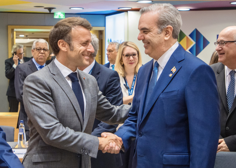 Presidentes Abinader y Macron dialogan por varios minutos en Cumbre UE-CELAC