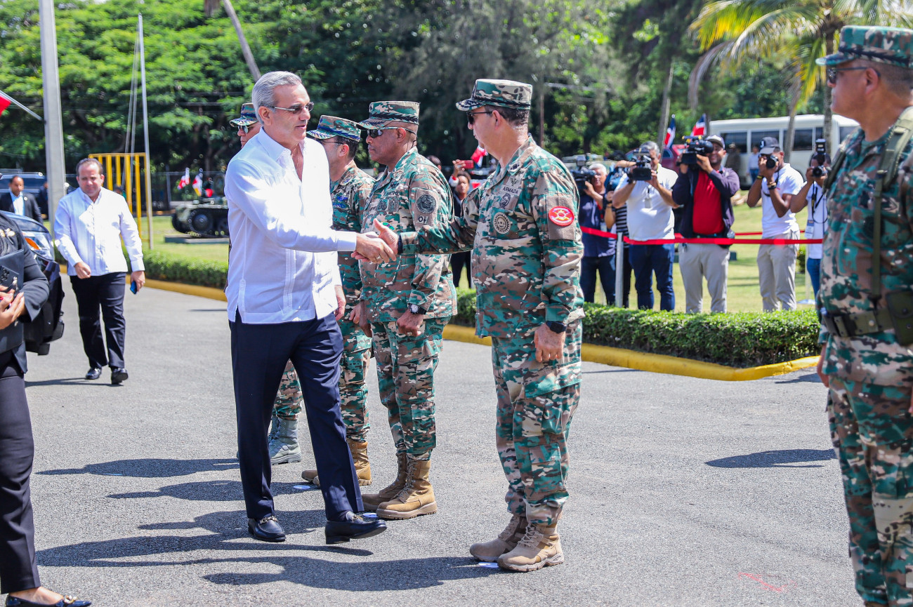 El presidente entrega 20 vehículos blindados de Alta Movilidad Táctico (VAMTAC), al ejército de la República Dominicana, que disponen de cámaras de alta definición en tiempo real y comunicación simultánea ante emergencias, los cuales fortalecerán este organismo militar, para proteger la integridad y soberanía de la nación.