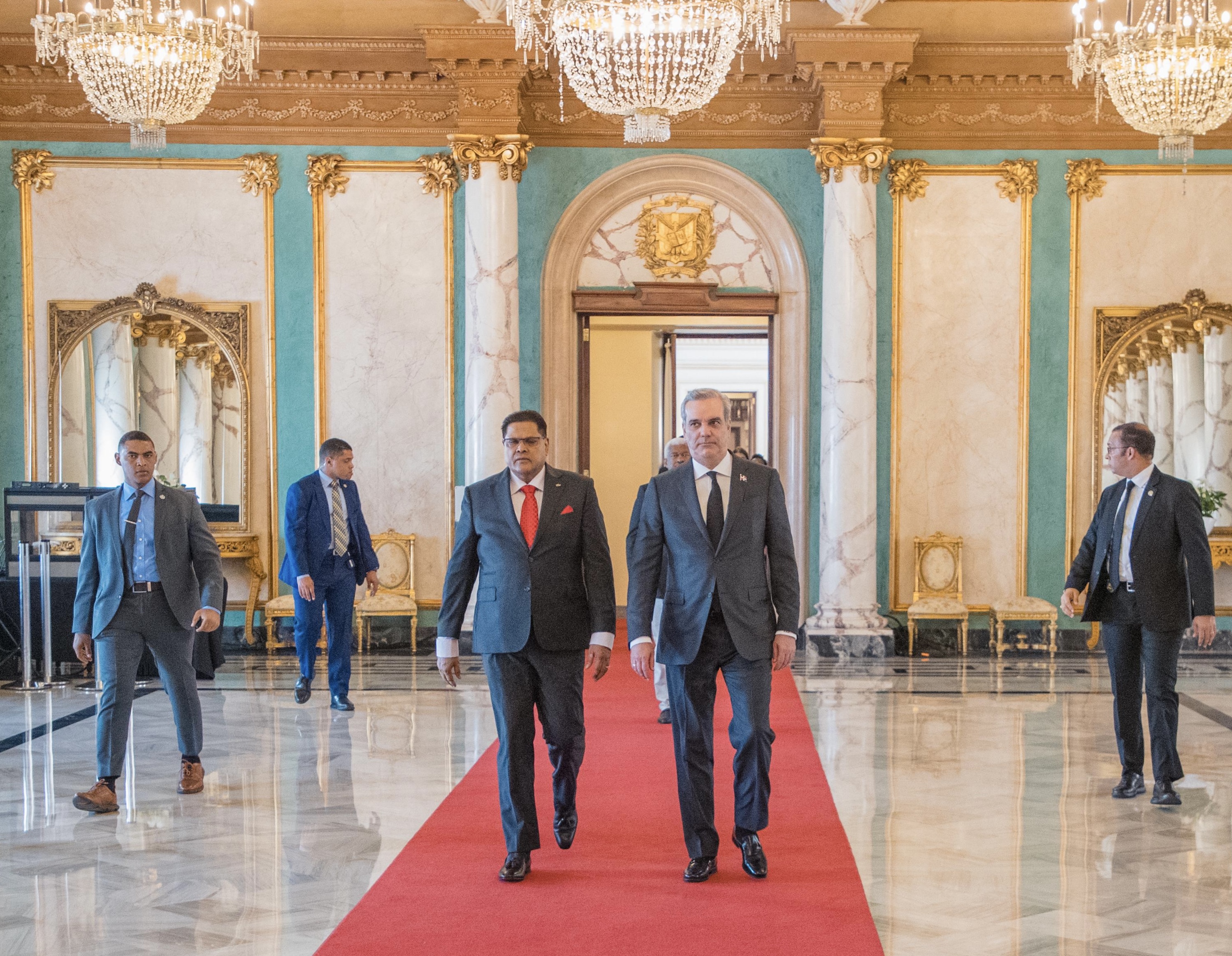 Santo Domingo.- El presidente Luis Abinader recibió este jueves en el Palacio Nacional a su homólogo de la República de Surinam, Chandrikapersad Santokhi, quien realiza una visita oficial al país.