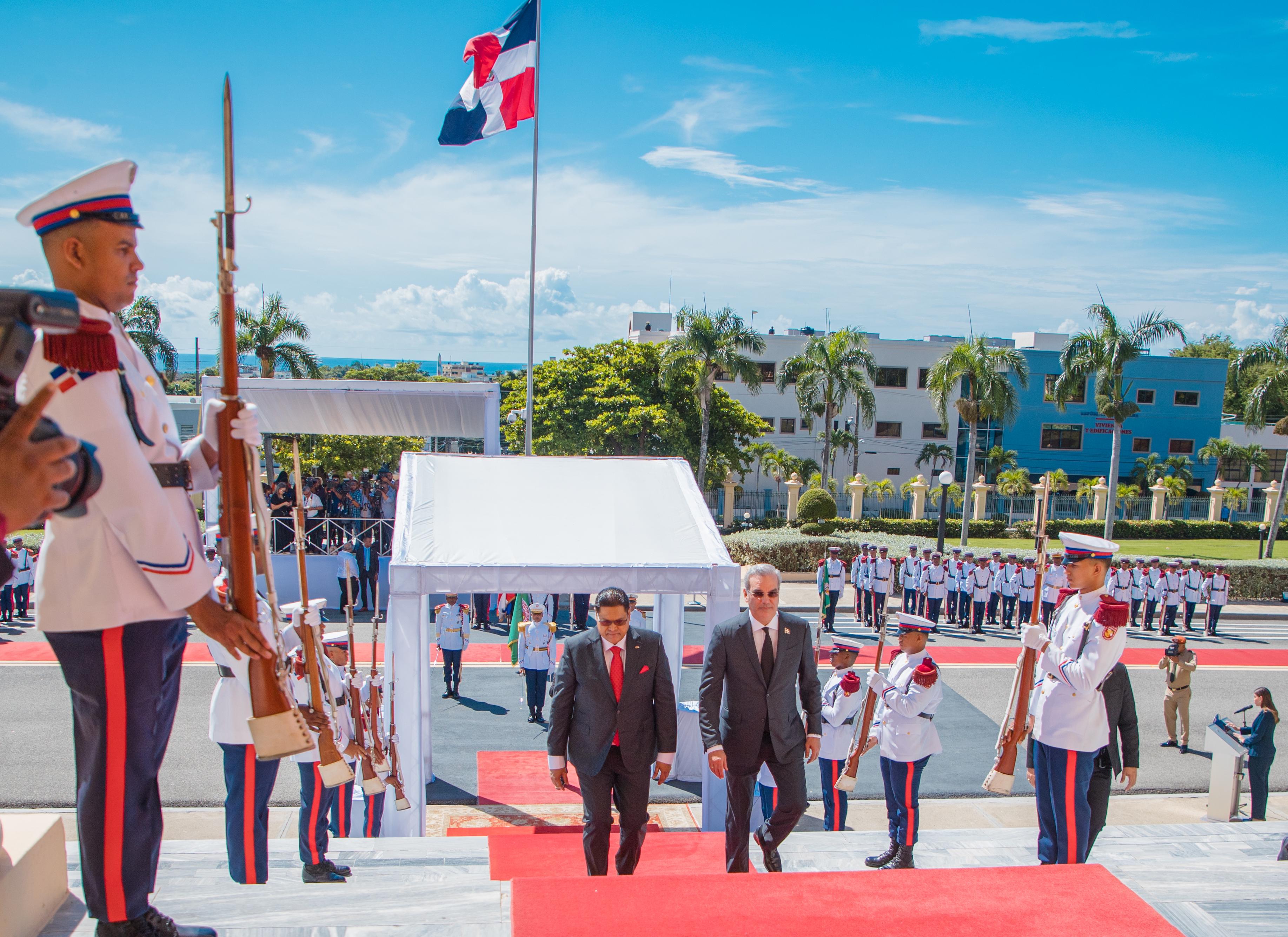 Presidente Abinader recibe a su homólogo de Surinam, Chandrikapersad Santokhi, en visita oficial