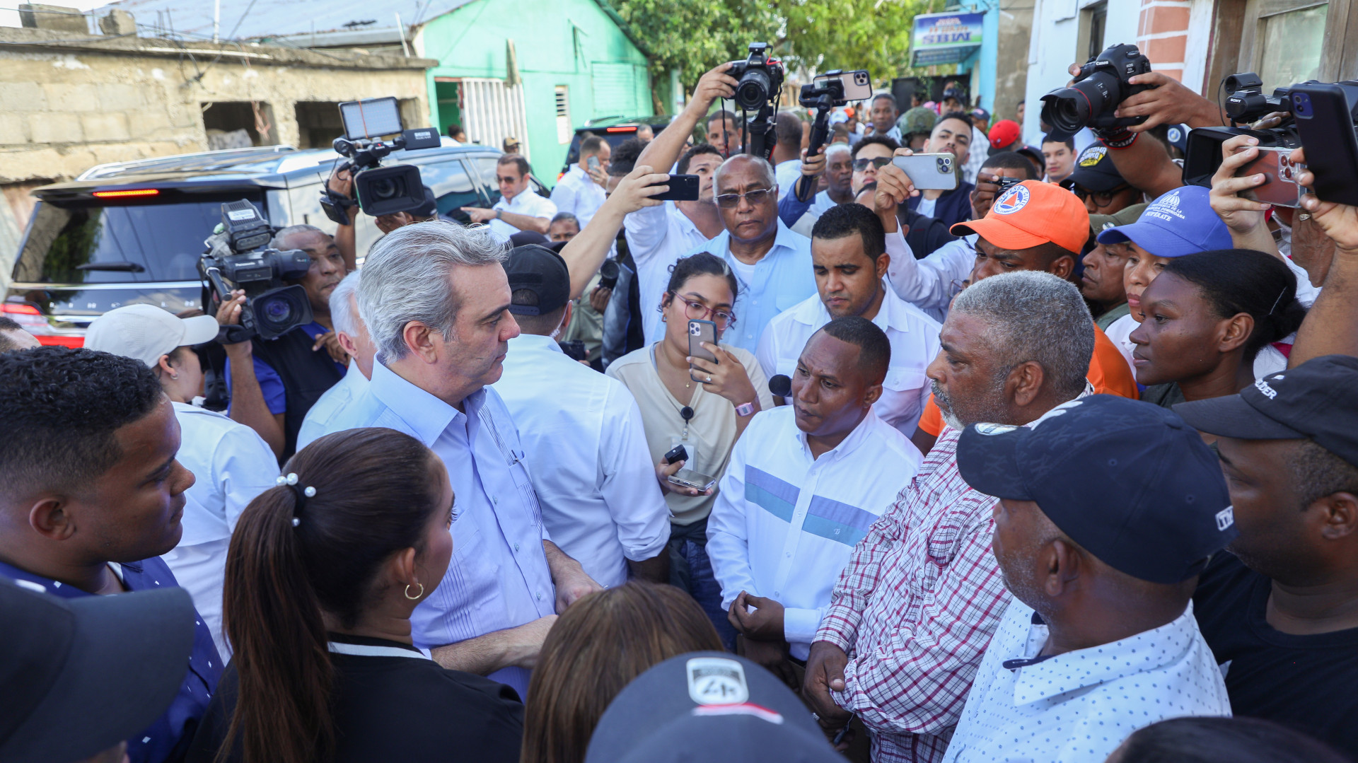 Visita del Presidente Abinader al sector Los Guaricanos y ver los daños causados por la lluvia del pasado fin de semana.
