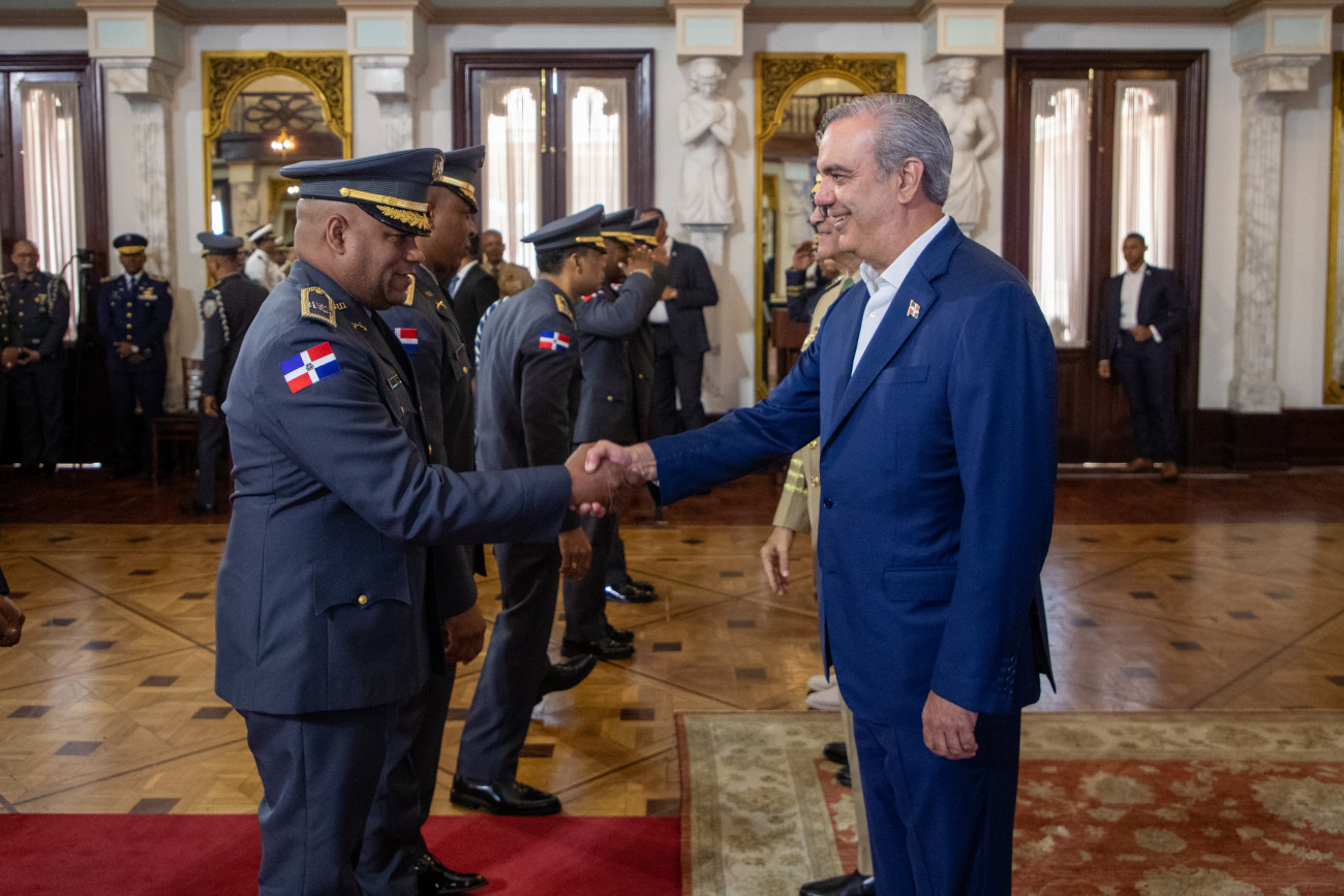 En un solemne acto, el Pdte. @LuisAbinader recibió el saludo de nueve promociones de oficiales de las Fuerzas Armadas y la Policía Nacional, a quienes manifestó su admiración, respeto y orgullo; asimismo, les reiteró su compromiso de seguir trabajando para mejorar sus condiciones laborales y de vida.