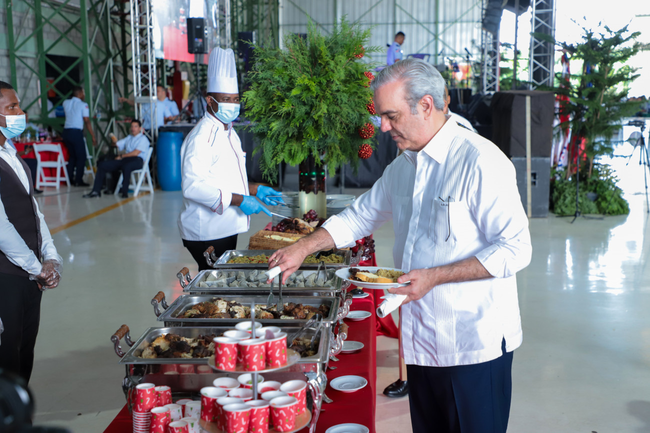 El Presidente Luis Abinader almuerza con miembros de la Fuerza Aérea en San Isidro