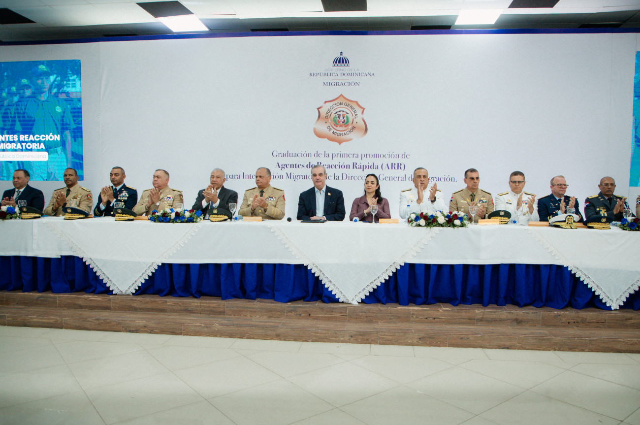 Santo Domingo.- El presidente Luis Abinader encabezó este viernes la graduación de la primera promoción de 160 Agentes de Reacción Rápida (ARR) para interdicción migratoria, la cual constituye una nueva generación concentrada en robustecer la capacidad operativa, con el fin de ejercer una política migratoria firme, ordenada y humana, orientada a salvaguardar la seguridad y la soberanía nacional.