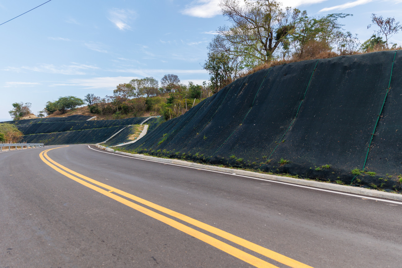 Producción de la construcción de la nueva carretera de Punta Rusia.
