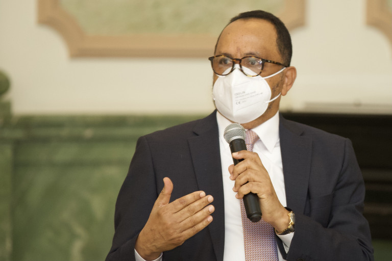 Rueda de prensa de la directora de Ética e Integridad Gubernamental, Milagros Ortíz Bosch y el director de Compras y Contrataciones Públicas, Carlos Pimentel.