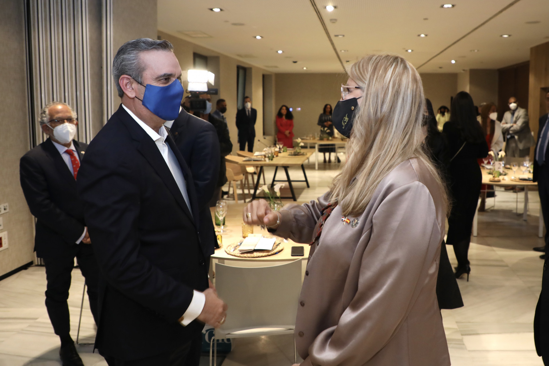 El Presidente Luis Abinader fue recibido por personalidades destacadas de la comunidad dominicana radicada en España, las cuales ofrecieron una cena en honor a la visita del mandatario.