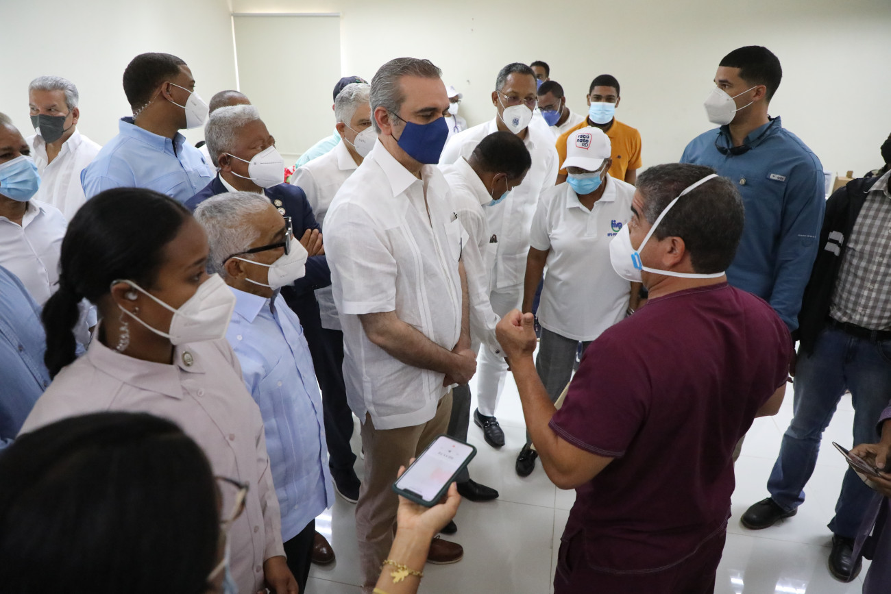 El mandatario quien se ha convertido en el principal promotor y motivador para que los dominicanos acudan a inocularse en todo el país, también se interesó por las situación del hospital y las condiciones en que desempeñan sus labores el personal médico y administrativo.