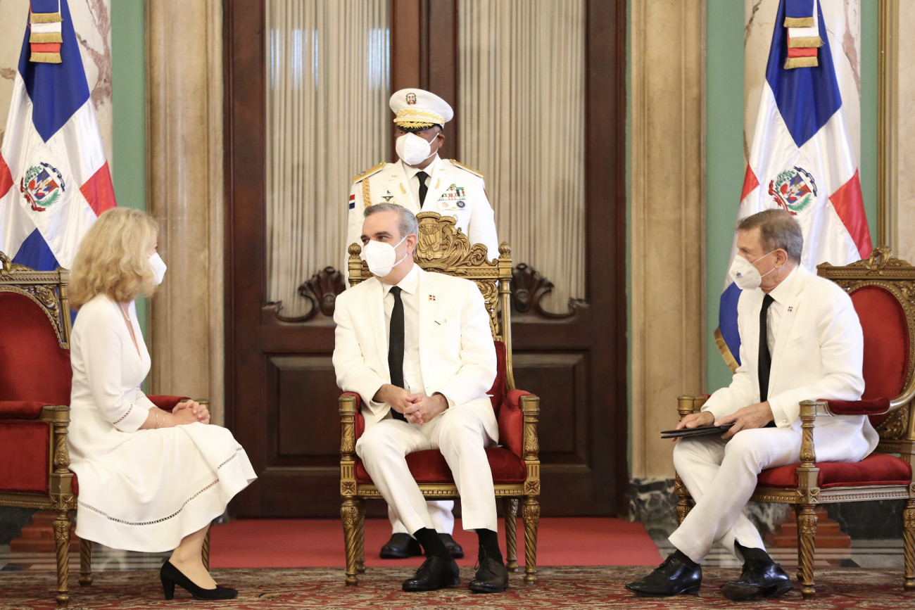 El Presidente Luis Abinader recibió, junto al canciller Roberto Álvarez , las cartas credenciales de seis nuevos embajadores, durante un acto realizado en el Palacio Nacional