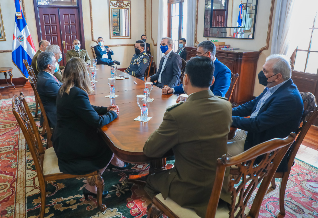 Una delegación de los Carabineros de Chile, se reunió en la mañana de este miércoles con el presidente Luis Abinader y el ministro de Interior y Policía, Jesús Vásquez Martínez, con quienes abordarán aspectos relacionados con la transformación y profesionalización de la Policía Nacional.