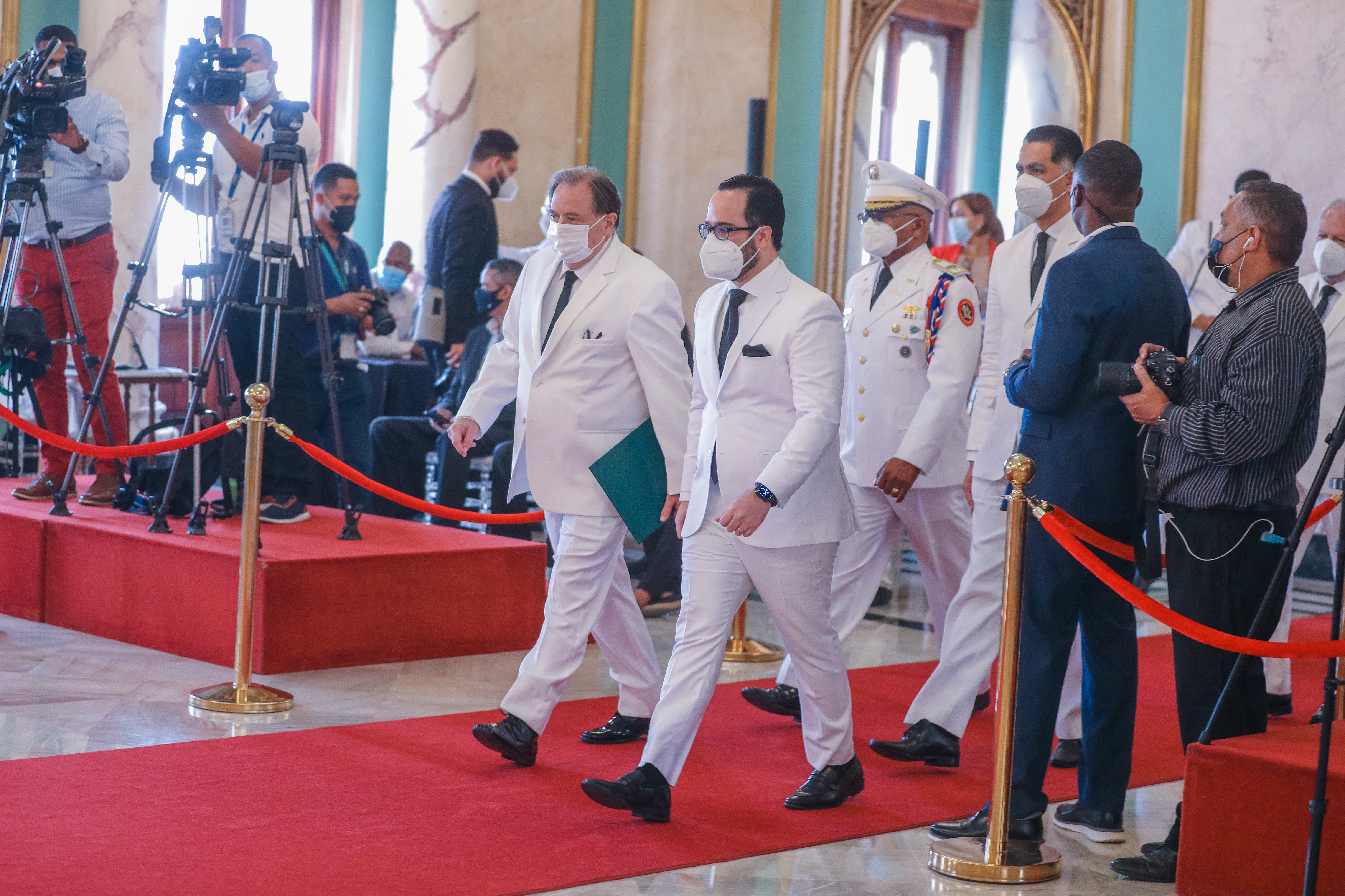 Durante el acto realizado en el Salón de Embajadores del Palacio Nacional, el Presidente estuvo acompañado por el Ministro de Relaciones Exteriores, Roberto Álvarez y la Vicepresidenta Raquel Peña.